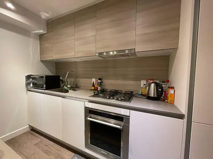 Specifications1 bedroom1 bathroom555 sfUtilities not includedFurnishedNo petsattached garage1 Year Lease Features:Gas StoveOvenIn-suite LaundryFridgeA/CNo Smoking Additional Benefits:Located in a prime waterfront location 5 min walk to the Skytrain15mins from Metrotown & 10 min to SFU Surrey CampusShopping center and cinema is at your doorstep