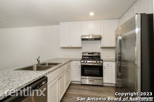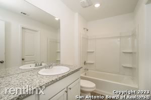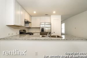 Fall in love with this Seguin rental home. Lit by bright, recessed ceiling lights and natural light from large windows, the living room, dining room, and kitchen share an open plan space. The living room door opens to the large, fenced yard, and the kitchen sports gleaming appliances. You'll love both the beauty of the salt and pepper countertops and the space they give you for storage and meal prep. You'll also love the spaciousness of the main bedroom's walk-in closet and the privacy of its en suite bathroom with its shower/tub combination with built-in shelves. (RLNE8103985)